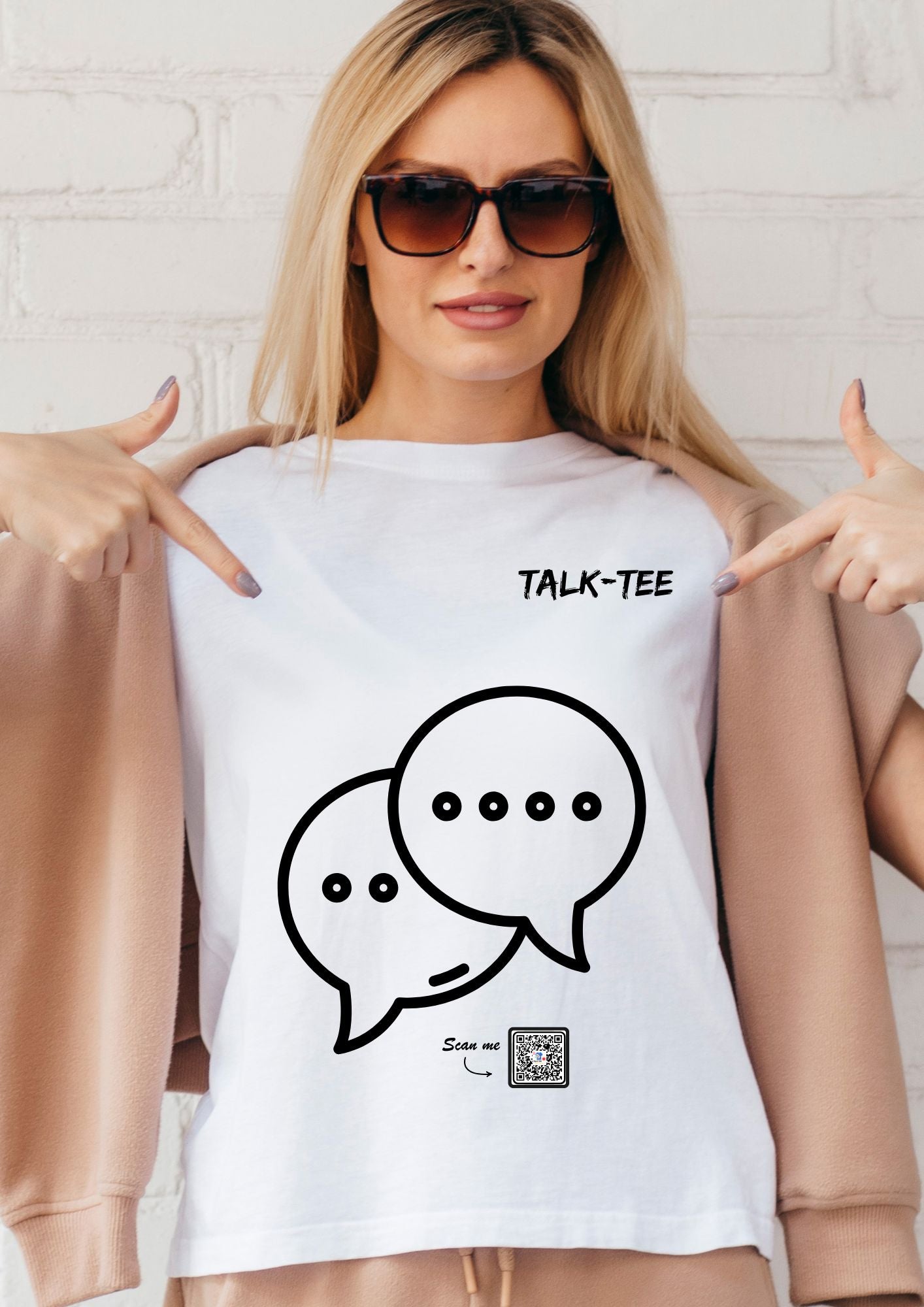 - Integrated Scan2Connect QR Code: This tee includes our Talk-Tee Scan2Connect QR code discreetly placed below the speech bubbles, linking to your own secure, personalised webpage with important medical details, emergency contacts, and communication tools—you decide what's important.